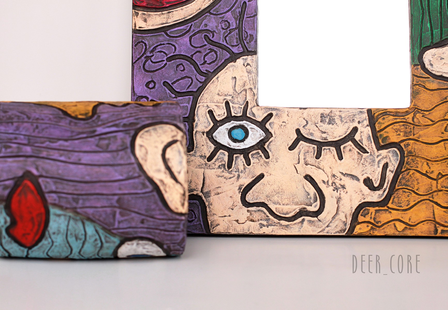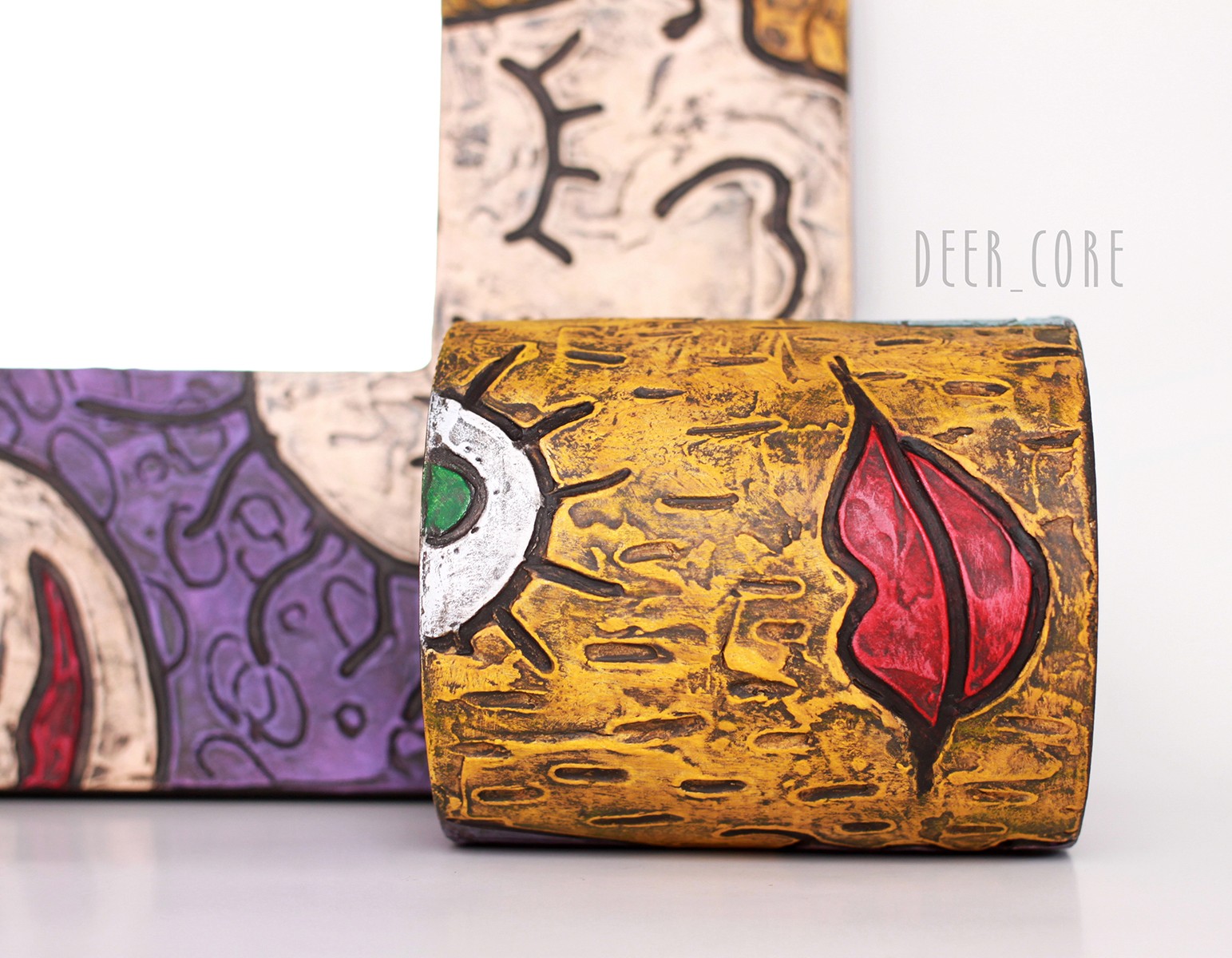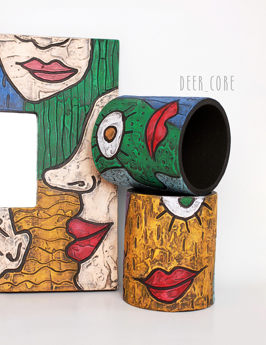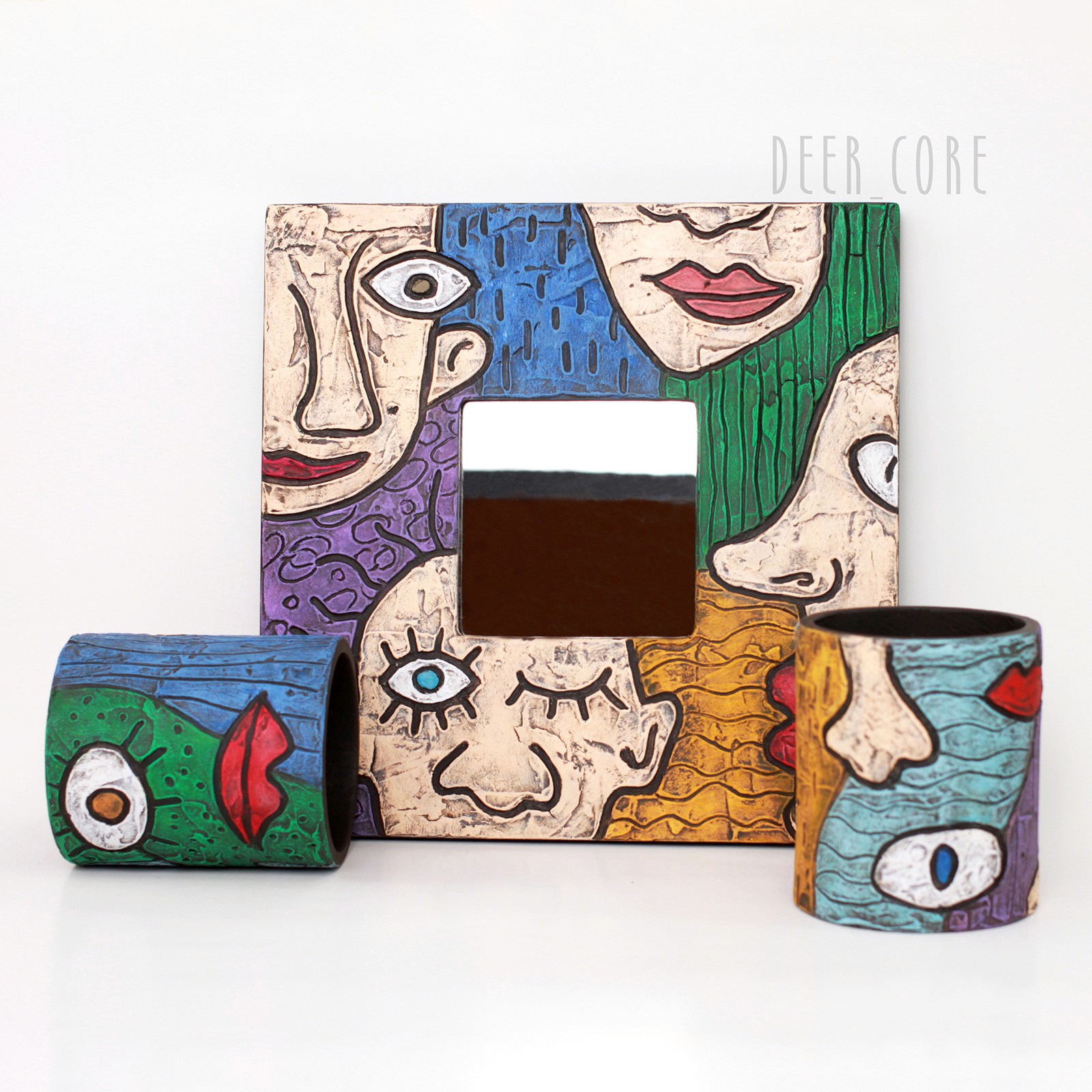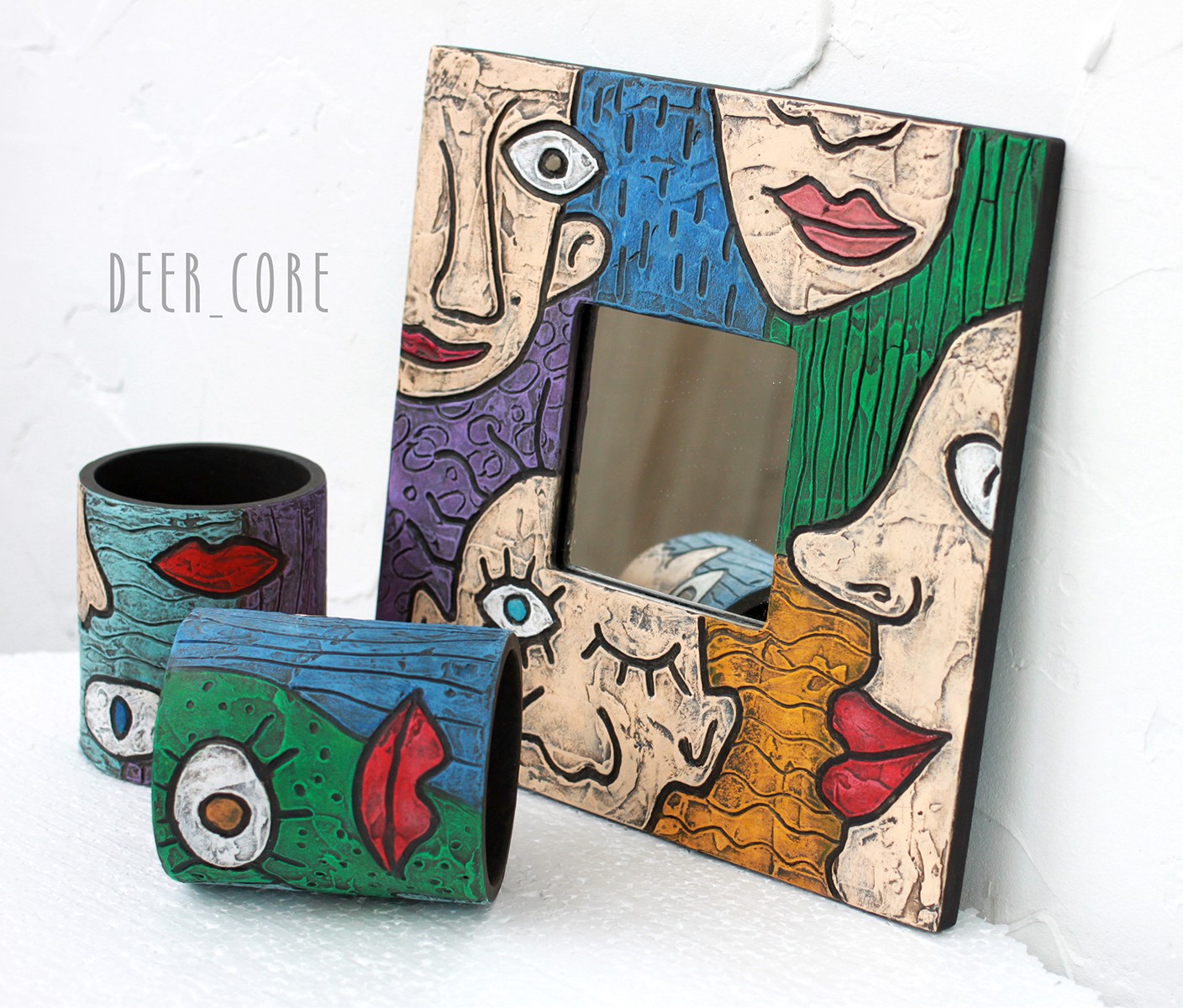 It's a bright accent in the interior. This decorative set consists of mirror and two vases. You can rotate the vases, choosing a new combination with a mirror every day.