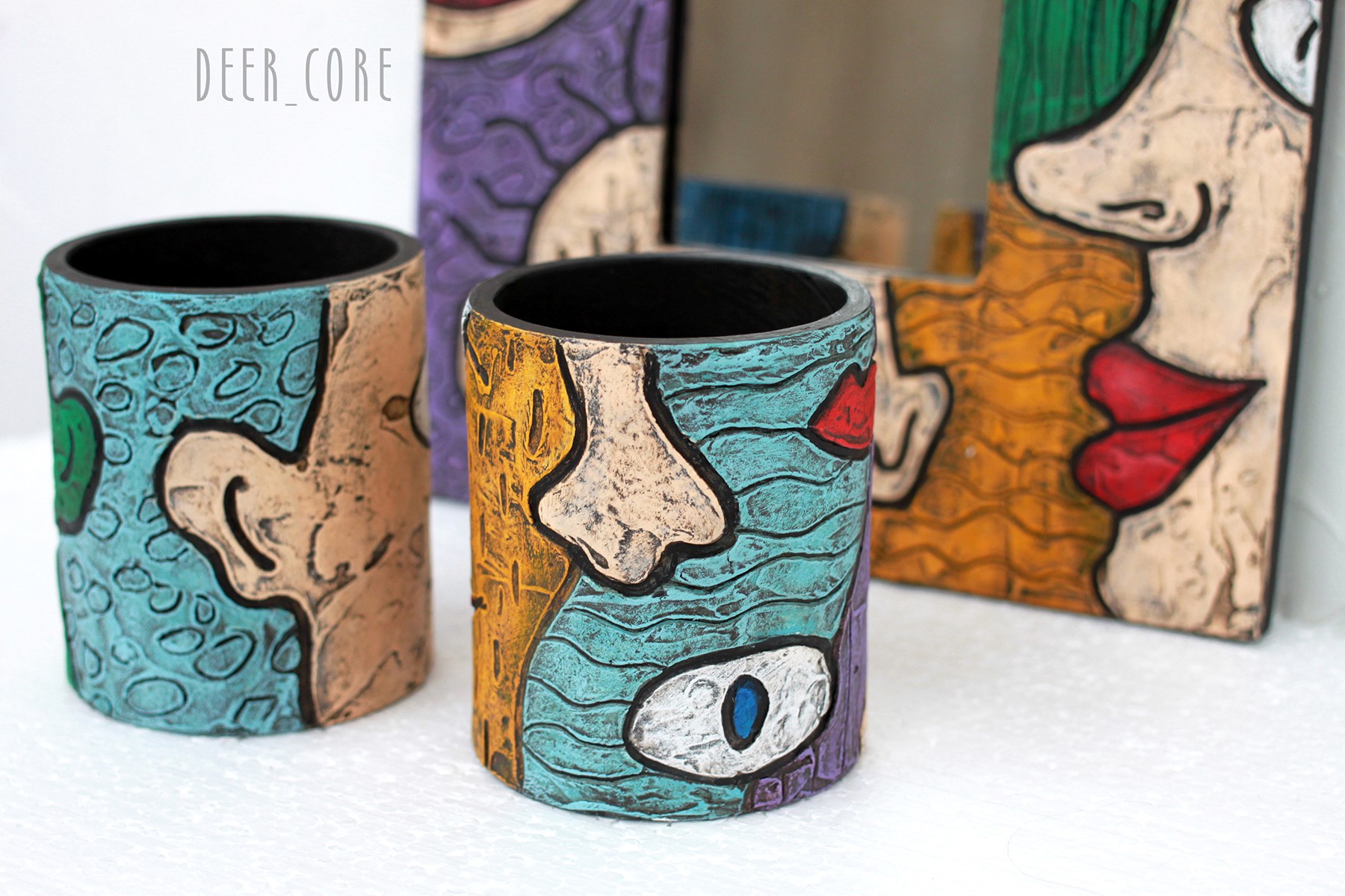 Please, pay attention!!! Vases are decorative only: don't use them for liquids or water - just for dry flowers, branches or for the cosmetics, brushes, pencils etc.