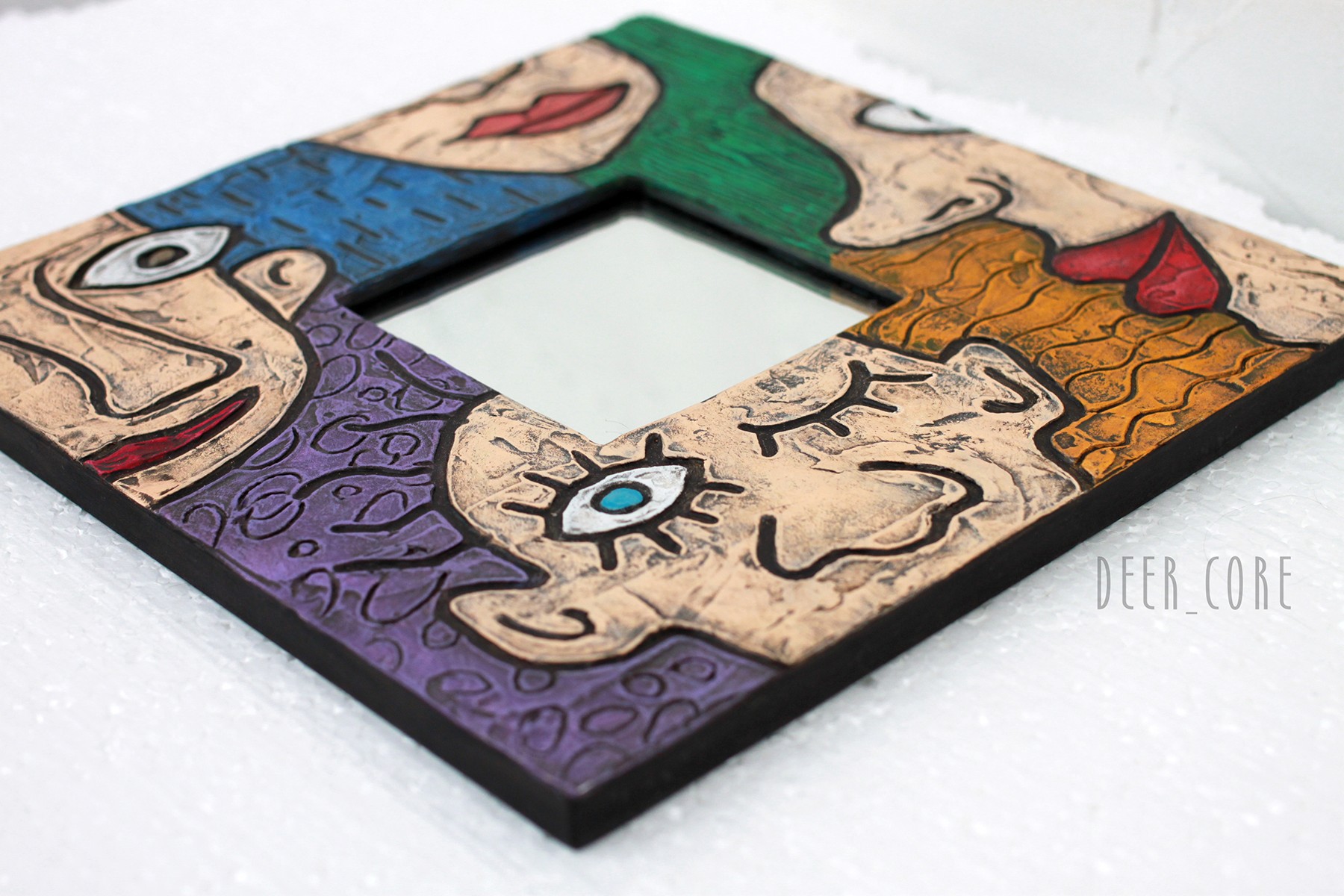 The picture is textured, covered with varnish for protection. You can hang the mirror or you can lean it against a vertical surface.
