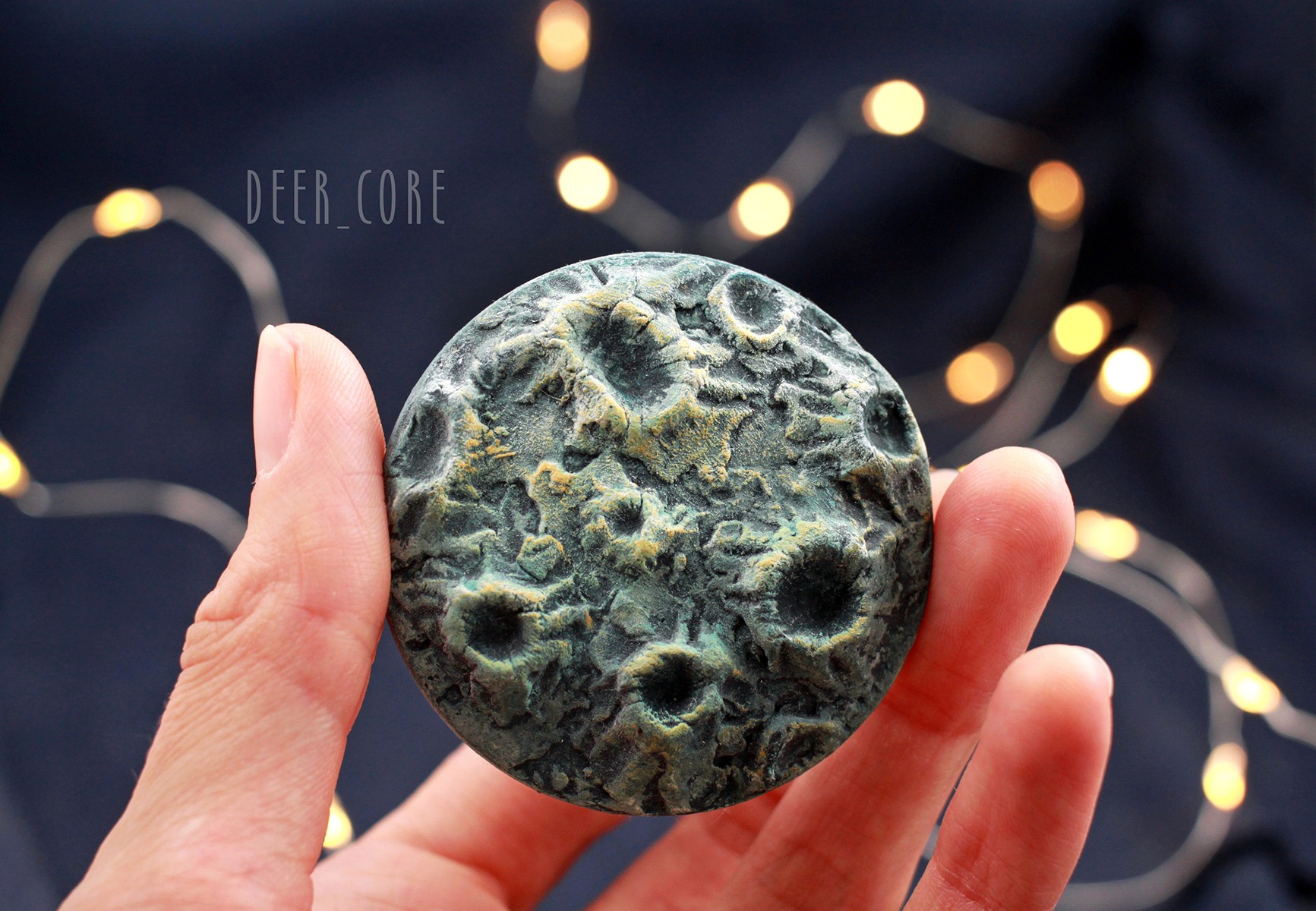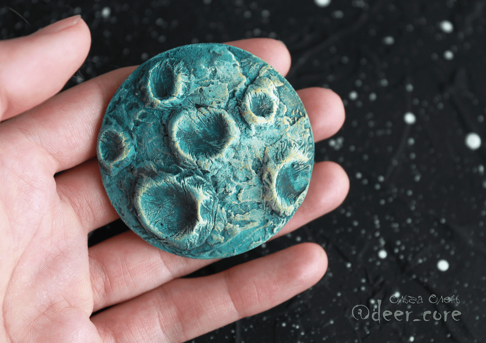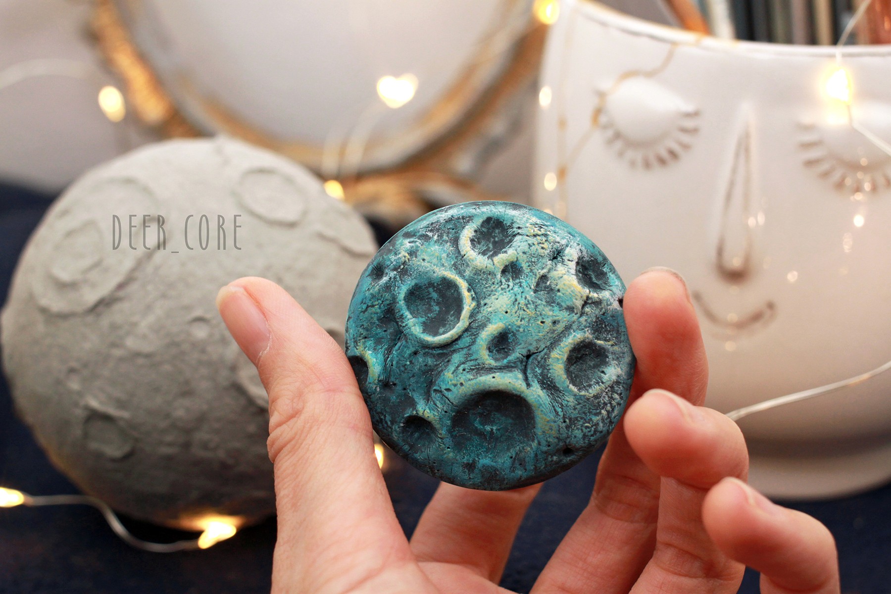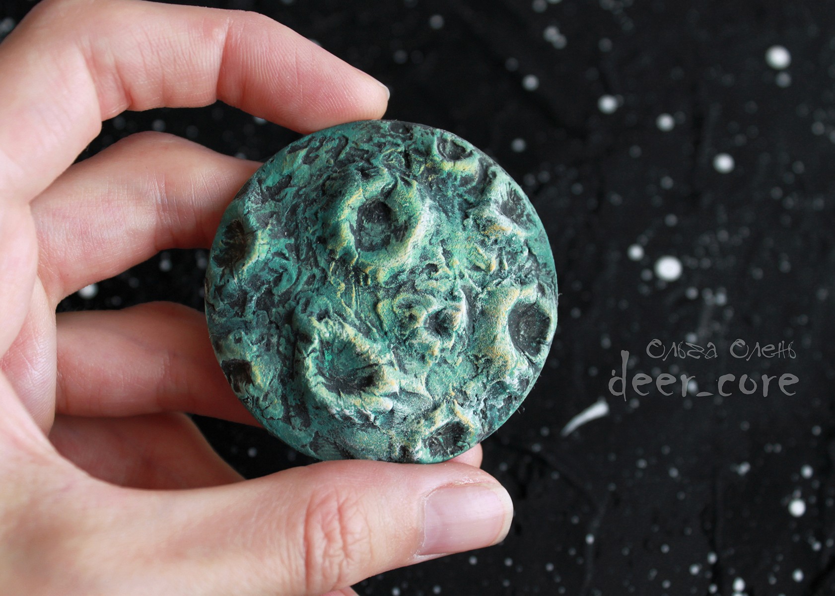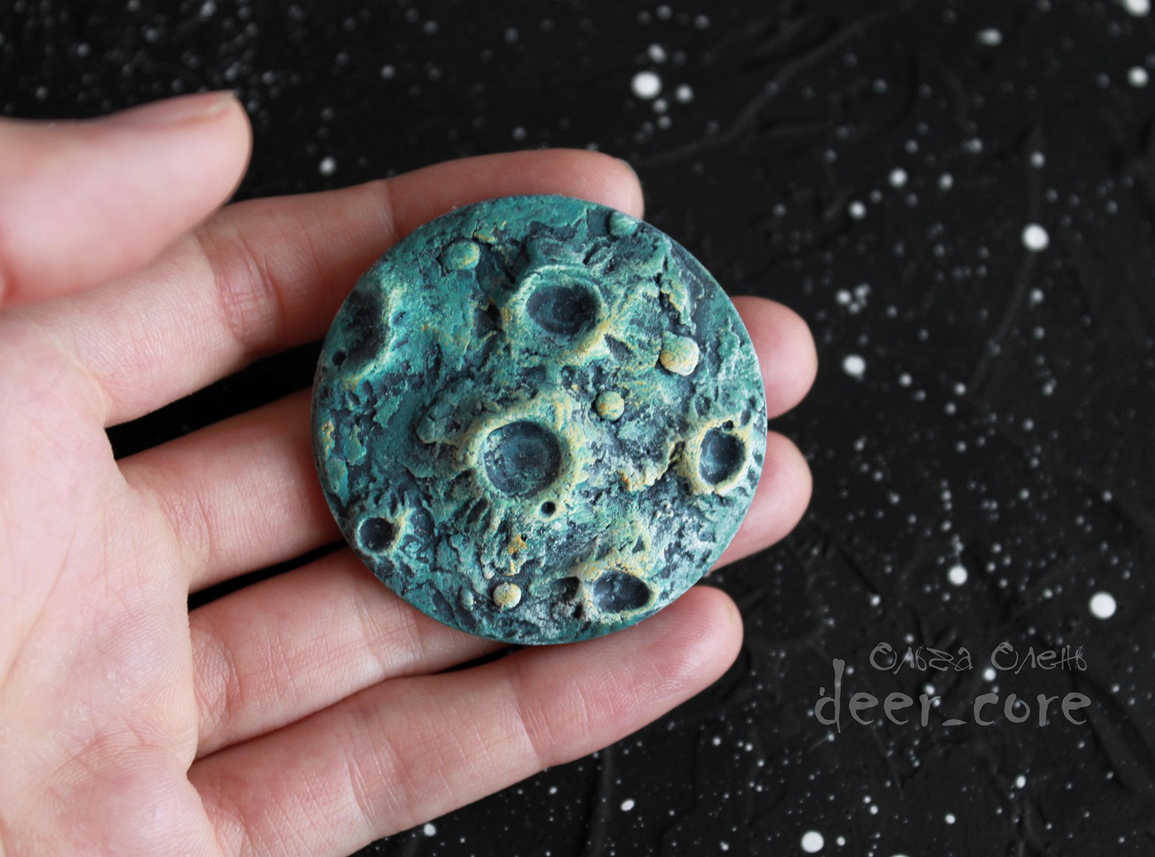 Hand sculpted and hand painted moon brooches of different tones, forms and sizes. Can be a very romantic present for your partner or lover since from ancient times people “gave” as a gift stars and moons to their beloved. But the brooch fits to a person who is interested in astronomy.
