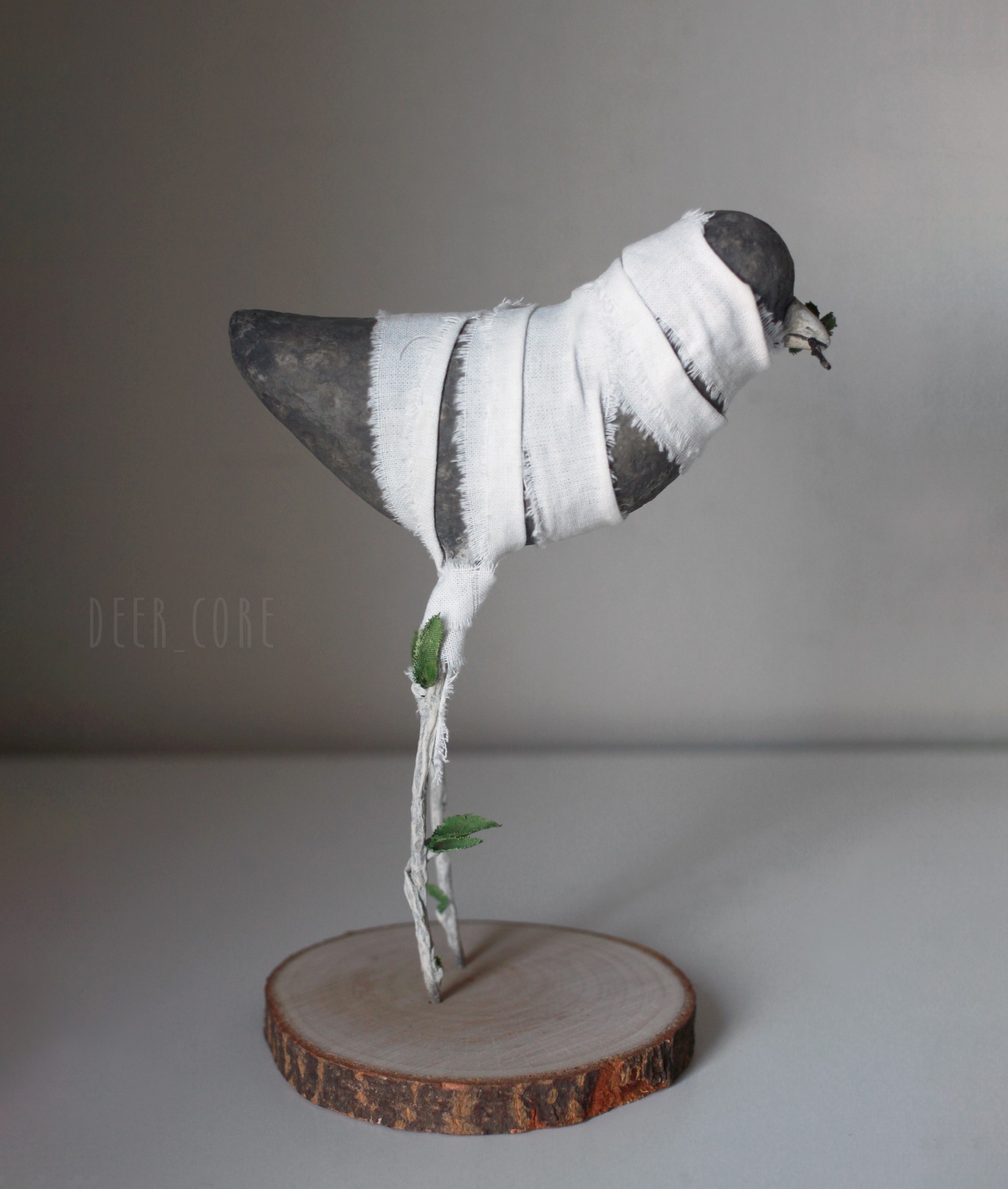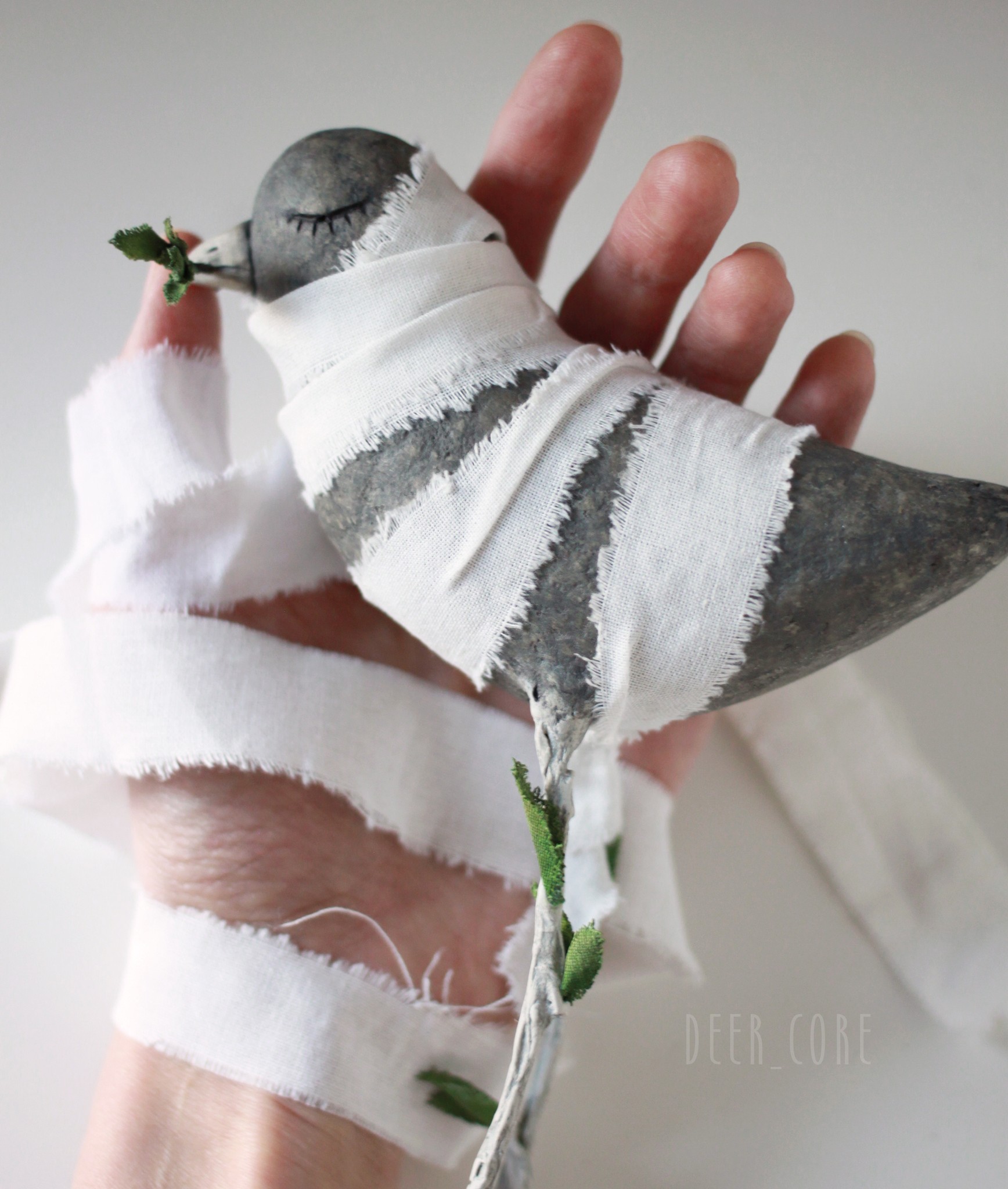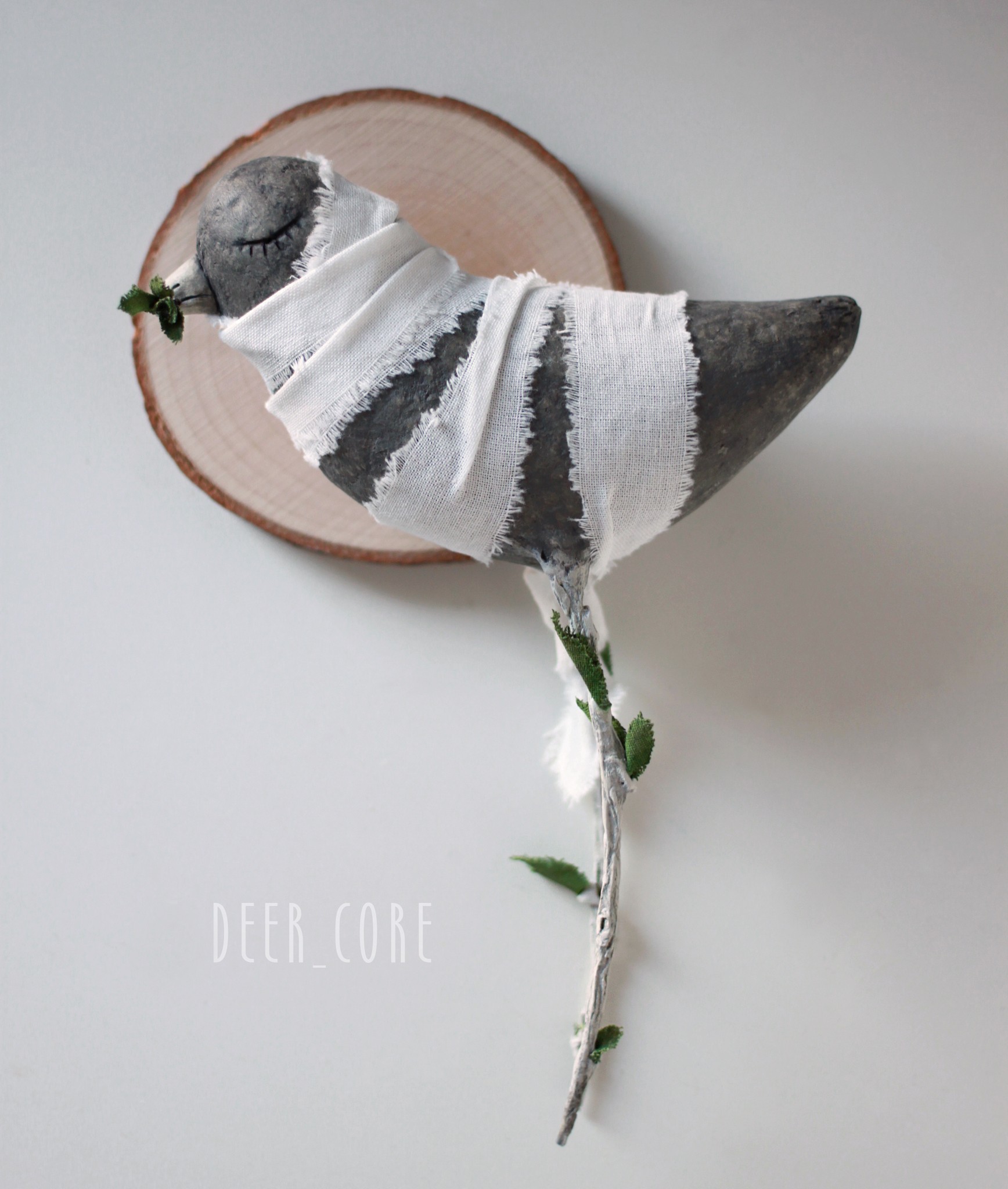 papier-mâché, acrylic paints, air drying clay, textile, wooden plate