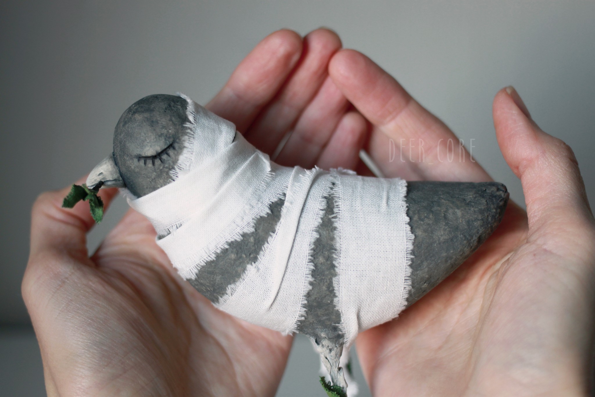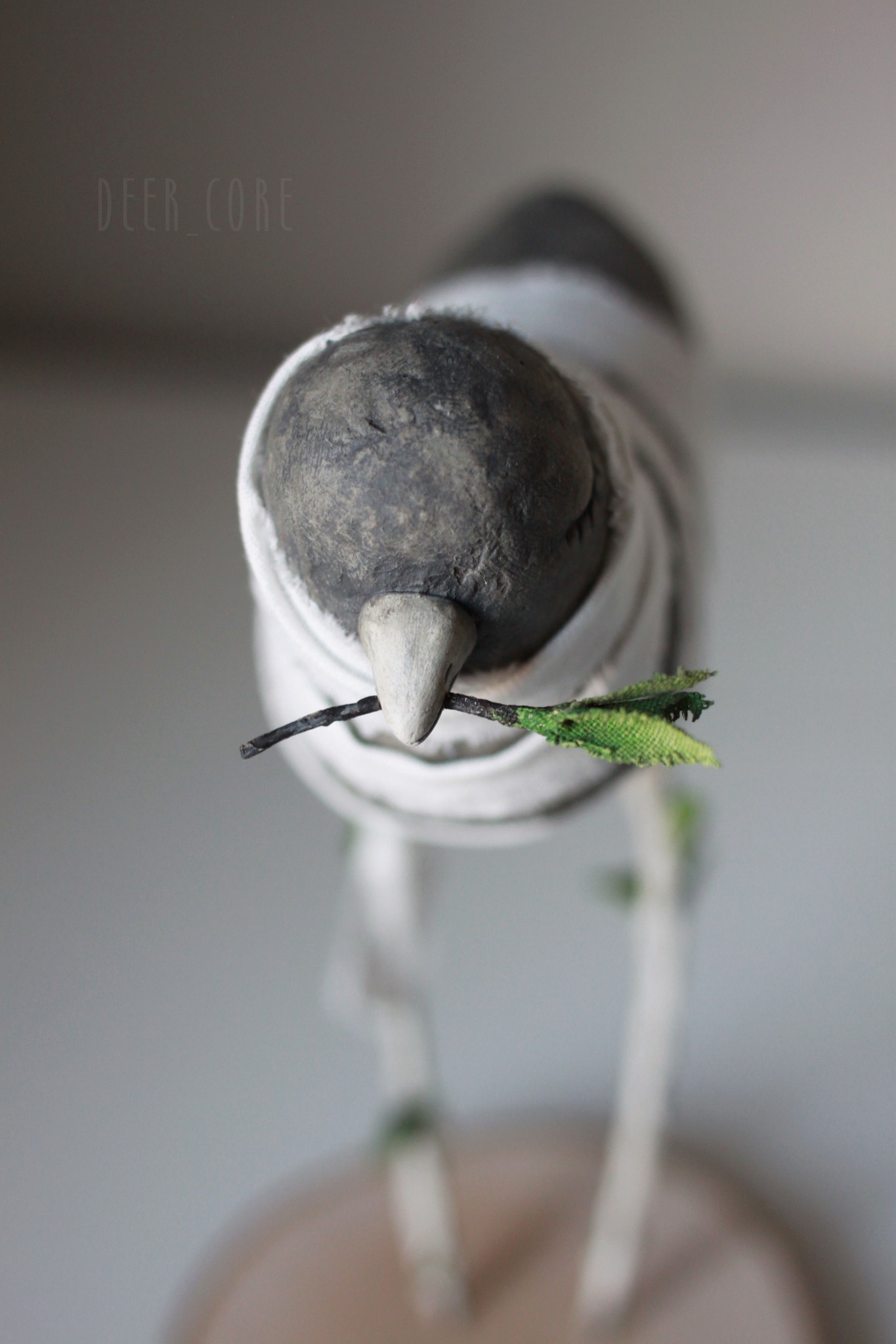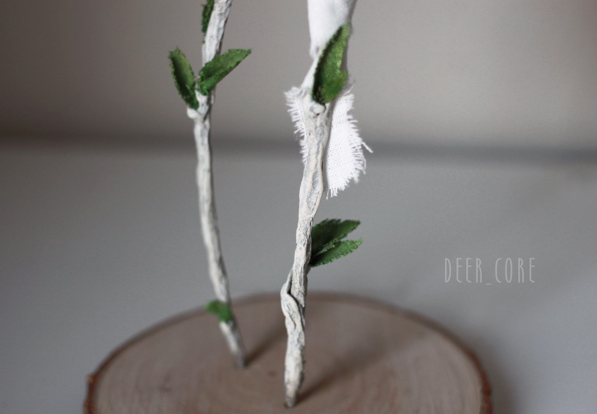 papier-mâché, acrylic paints, air drying clay, textile, wooden plate