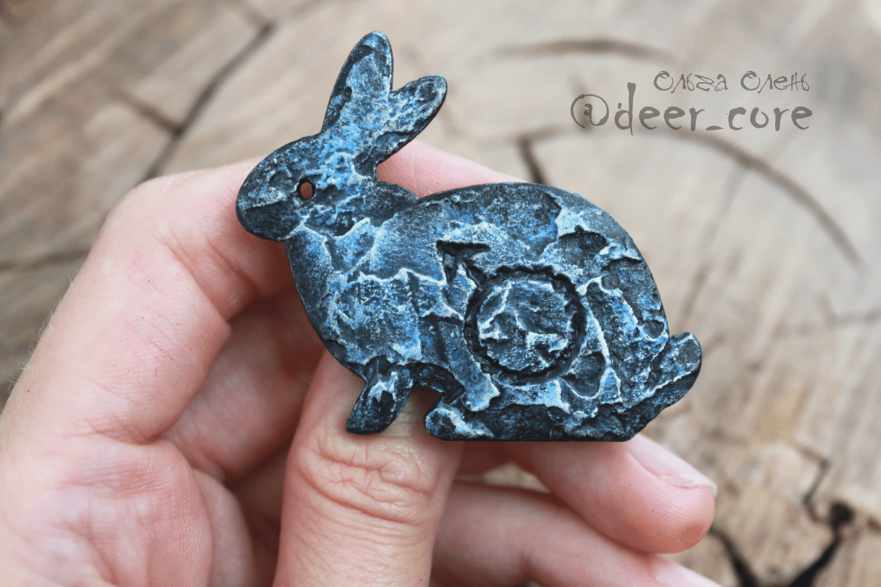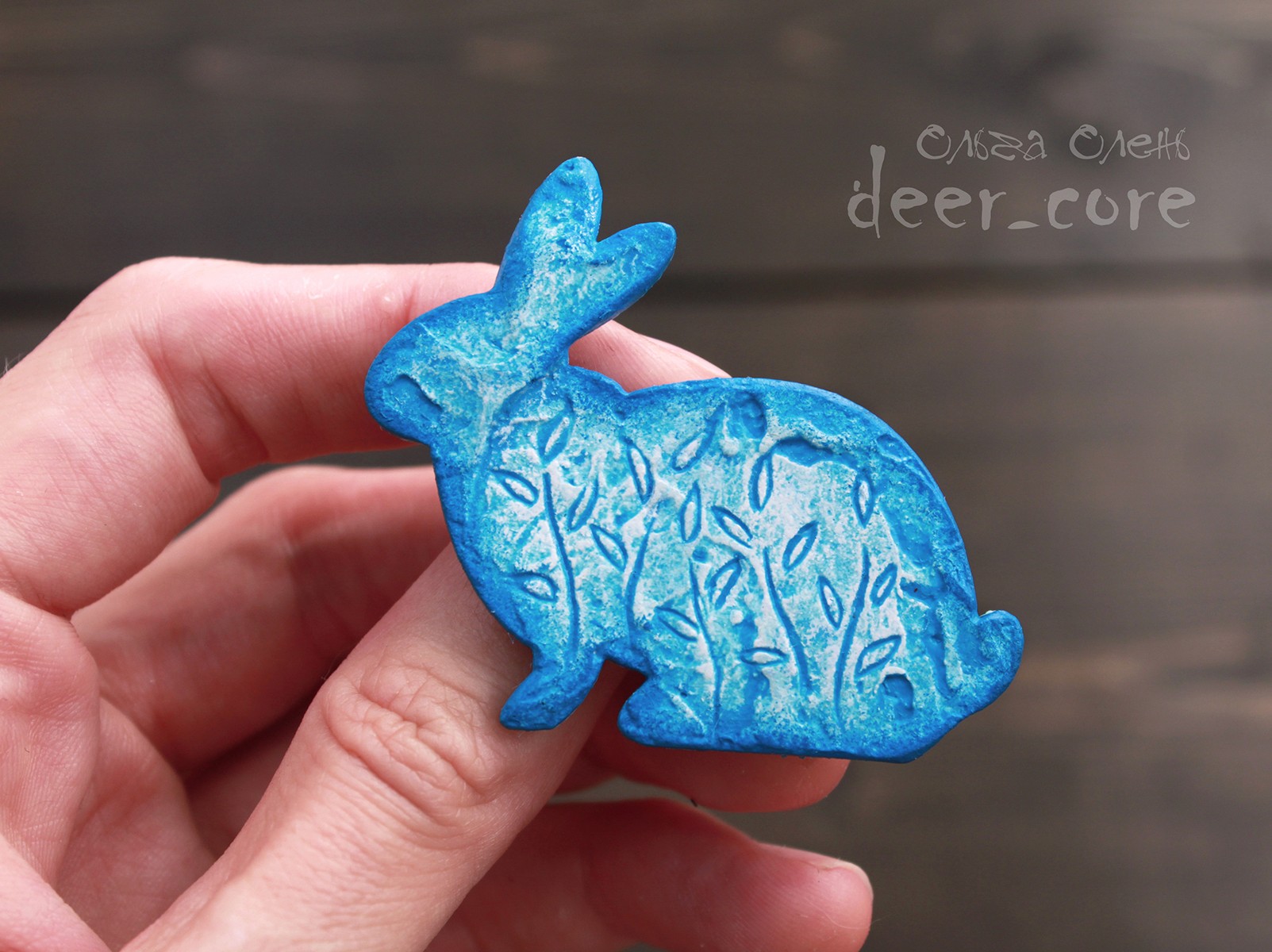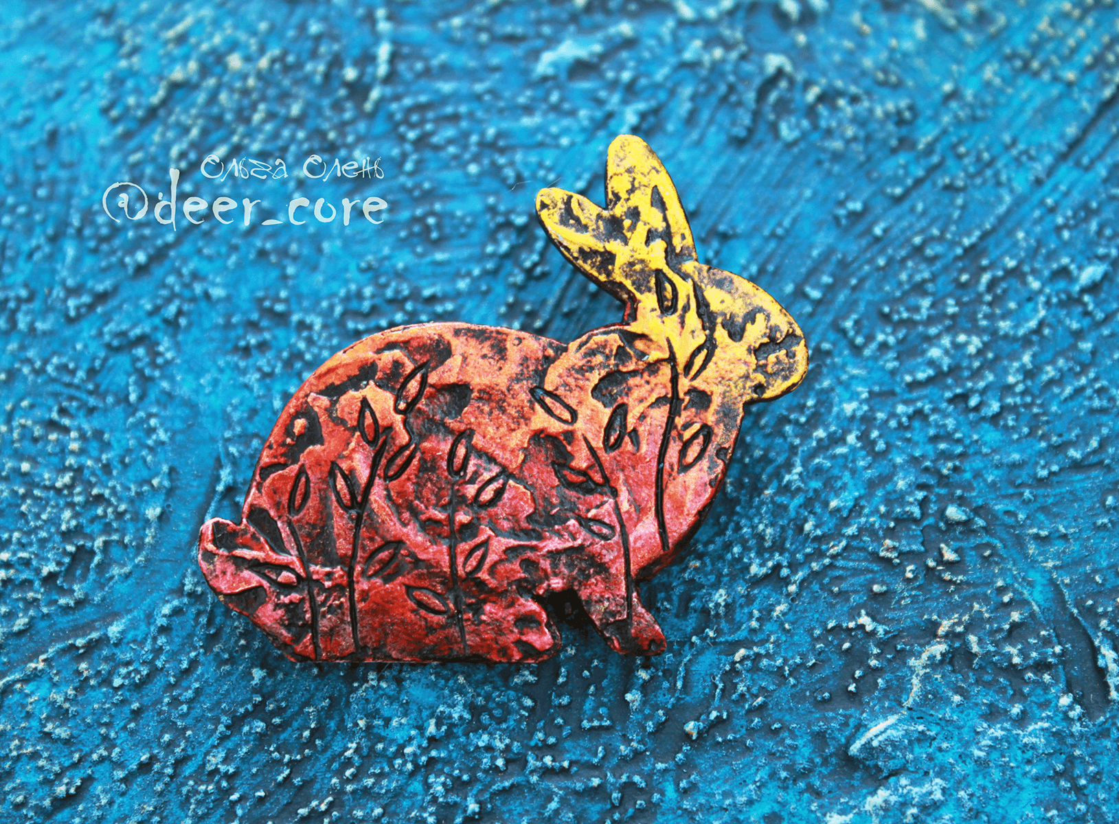 Wooden base, structural paste (plaster), acrylic paints, varnish, safety metal clasp