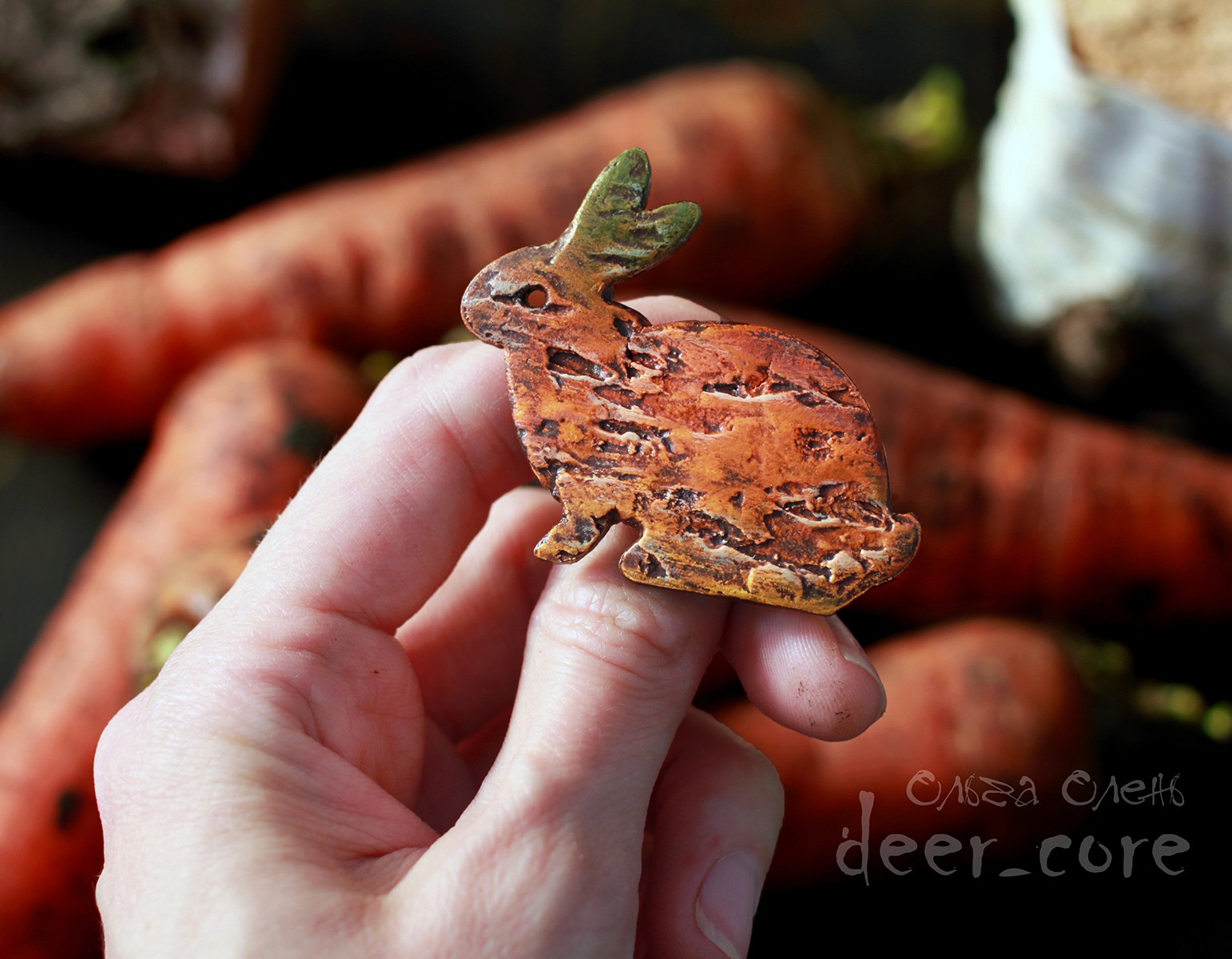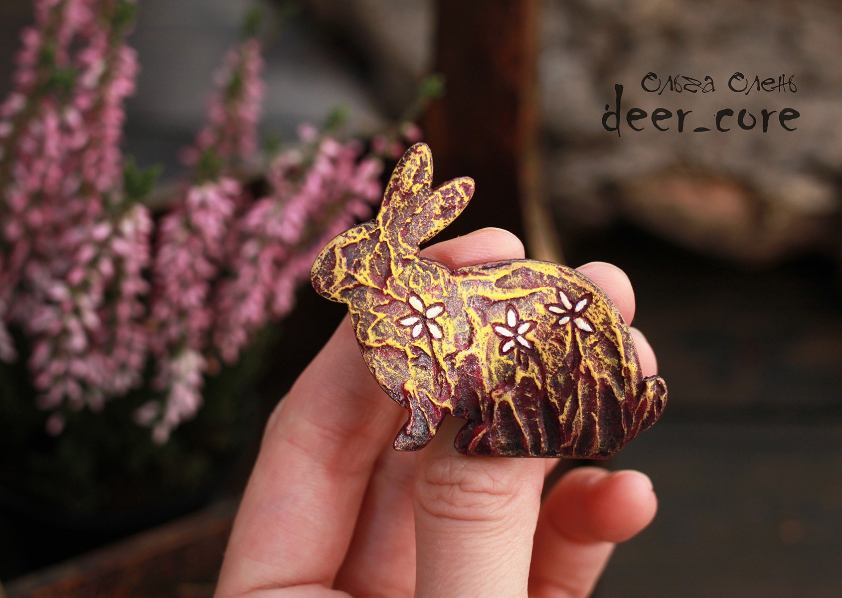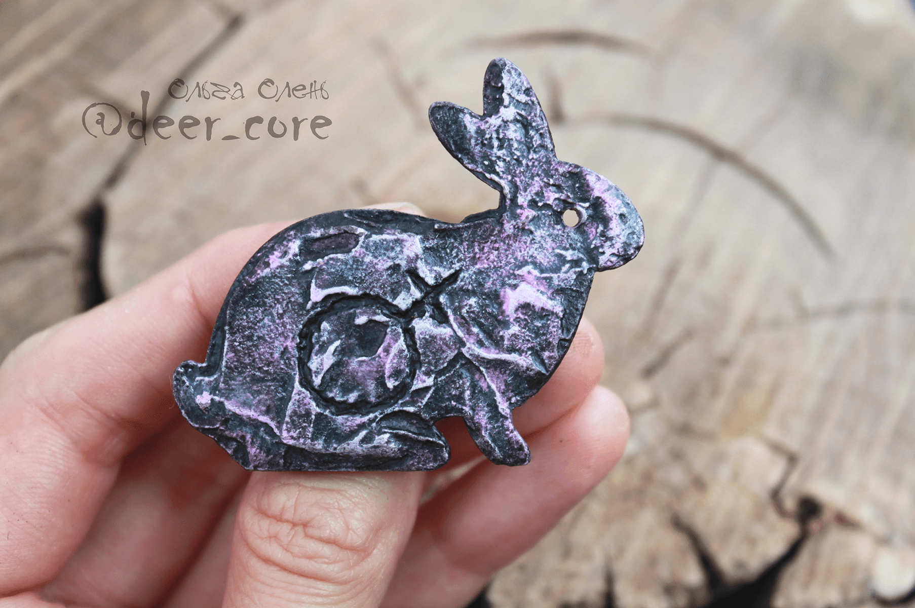 Wooden base, structural paste (plaster), acrylic paints, varnish, safety metal clasp