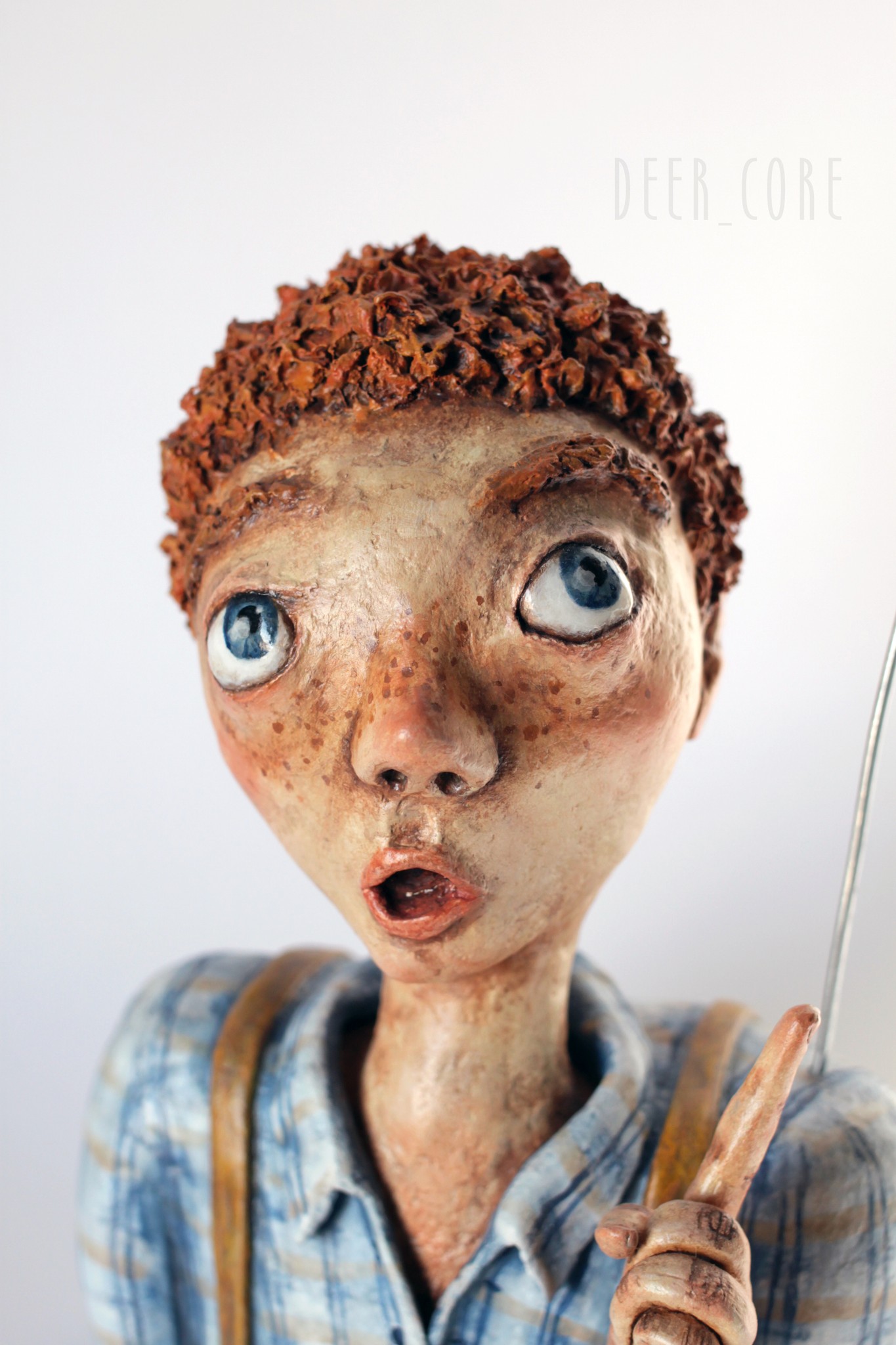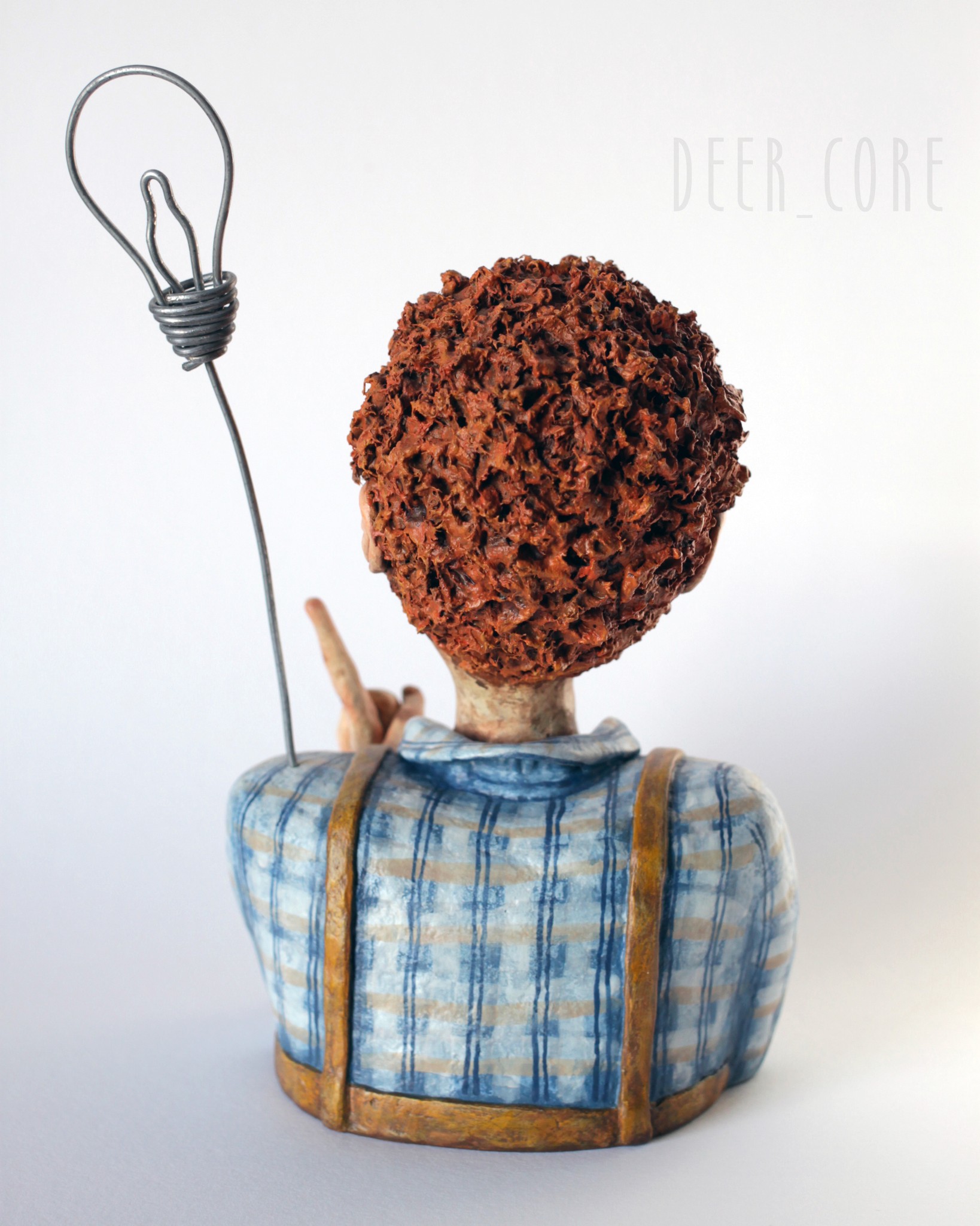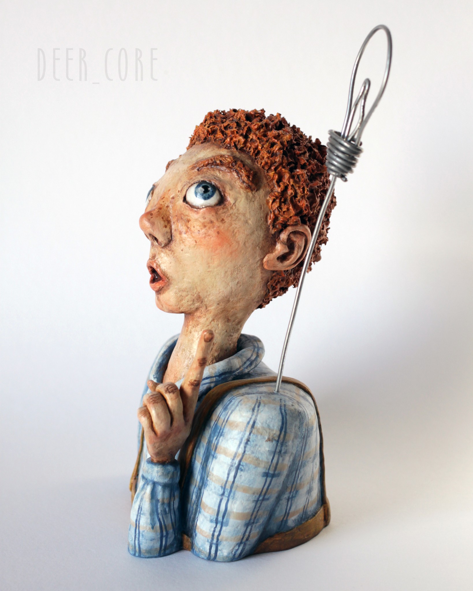 papier-mâché, acrylic paints, air drying clay, metal wire