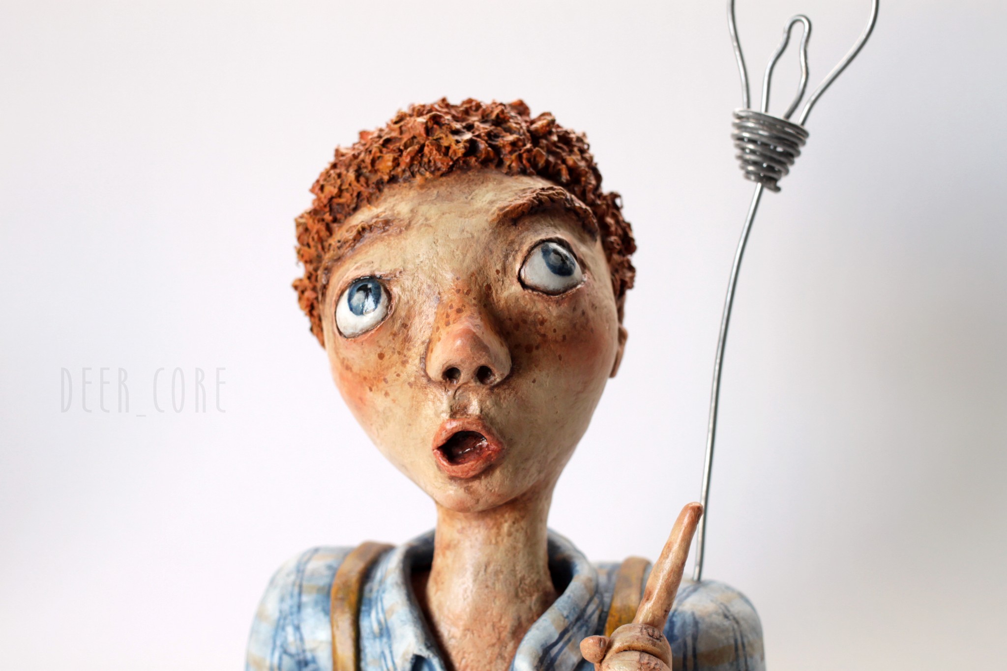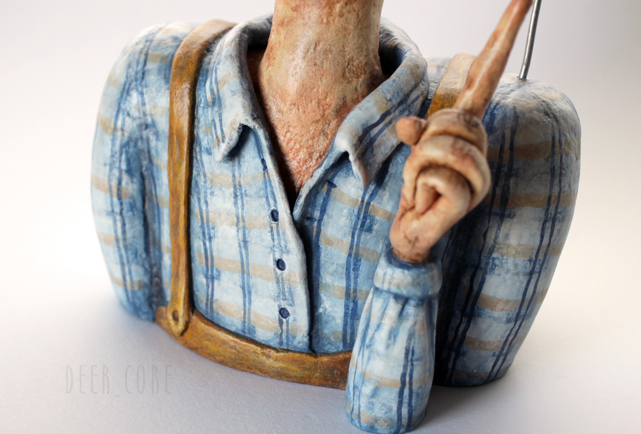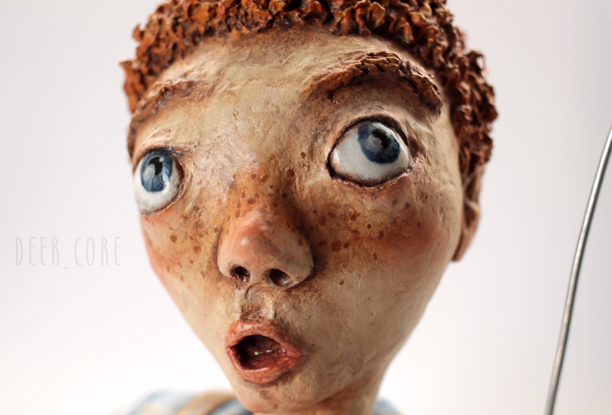 papier-mâché, acrylic paints, air drying clay, metal wire